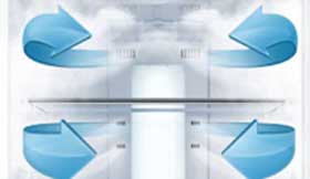 This technology delivers optimized airflow throughout the refrigerator without frost buildup. It ensures even cooling while preventing mildew and odor formation.